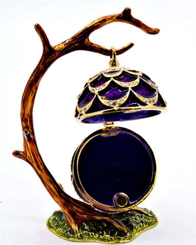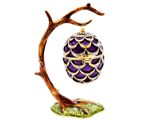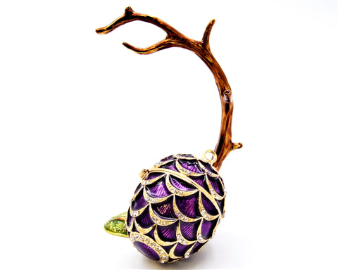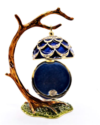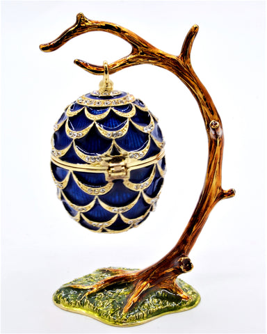 Ciel Collectables hanging egg trinket box is an elegantly designed by an artist by hand. Each pc is hand made so details may vary slightly. Hand Set Austrian crystal bling accents the piece with elegance and sparkle. This trinket box has lovely enamel in side. The hinge trinket box will arrive in a satin lined storage box making it a beautiful gift for any occasion or for your own collection.