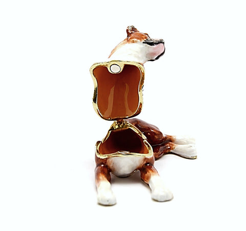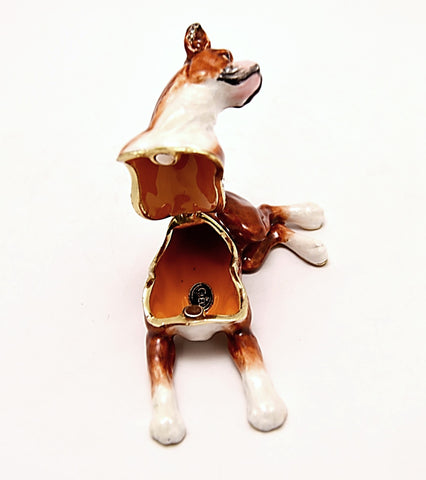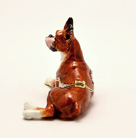 Boxer Dog Trinket Box – Hand Painted Enamel with Clear Austrian Crystals – Ciel Collectables