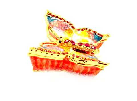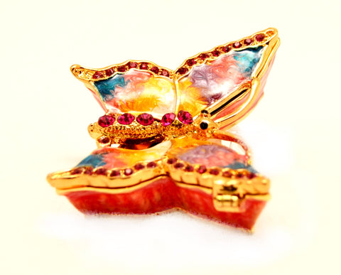 Butterfly Trinket Box – Hand Painted Pink Enamel with Austrian Crystals – Collectible Jewelry Box