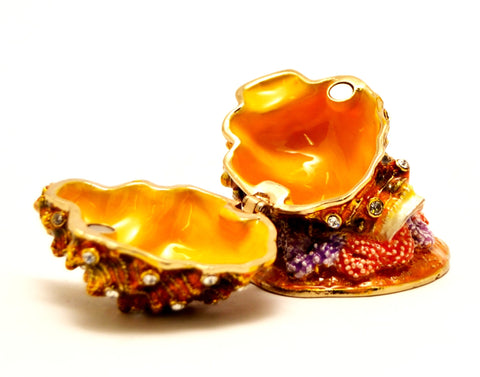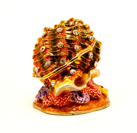 Conch Shell Trinket Box – Hand Painted Enamel with Austrian Crystals – Ocean-Inspired Collectible Gift