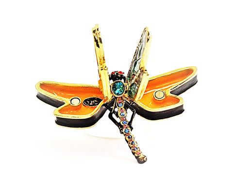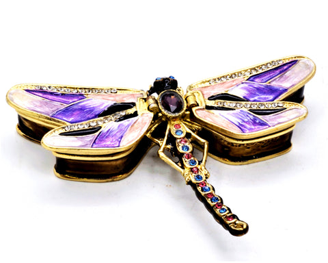 Delicate and enchanting, this Dragonfly Trinket Box from Ciel Collectables captures the beauty of nature in jeweled art form. Crafted from pewter with a gold-plated finish, it features hand-painted colorful enamel wings adorned with sparkling Austrian crystals that shimmer with every glance.