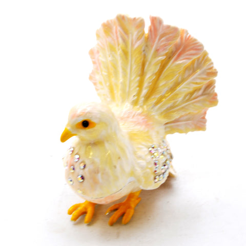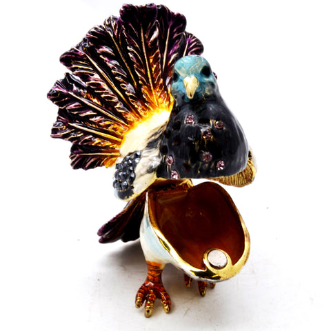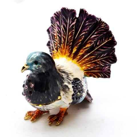 Ciel Collectables dove trinket box is an elegantly designed by an artist by hand. Each box is hand painted so details may vary slightly. Hand Set Austrian crystal bling accents the piece with elegance and sparkle. Hinge trinket box close with magnets. Inside of the box done with lovely hand painted enamel to give a perfect look. The box will arrive in a satin lined storage box making it a beautiful gift for any occasion or for your own collection.