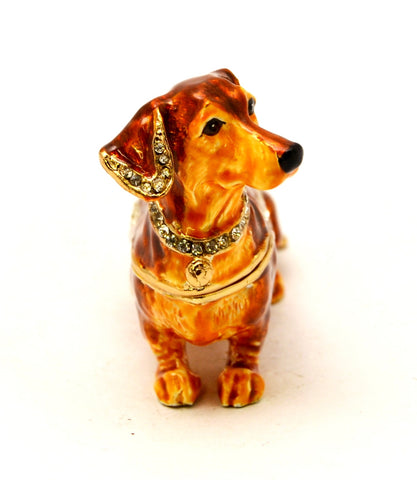 🐾✨ Dachshund Dog Trinket Box – Hand Painted Enamel with Austrian Crystals – Ciel Collectables