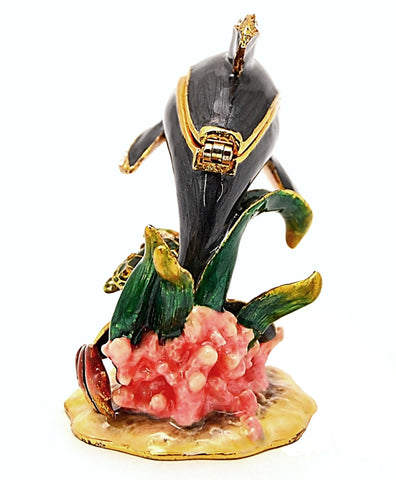 Celebrate the beauty of the ocean with this elegant Dolphin Trinket Box by Ciel Collectables. Expertly crafted from pewter and plated in gold, this stunning piece is finished with hand-painted colorful enamel and decorated with hand-set Austrian crystals that sparkle like sunlight on the sea.