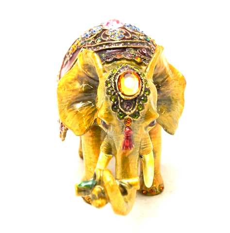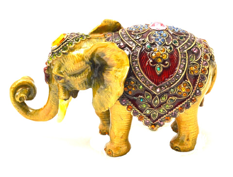 Bejeweled Decorative Elephant Trinket Box – Hand Painted Enamel & Austrian Crystals – Gift Box Included