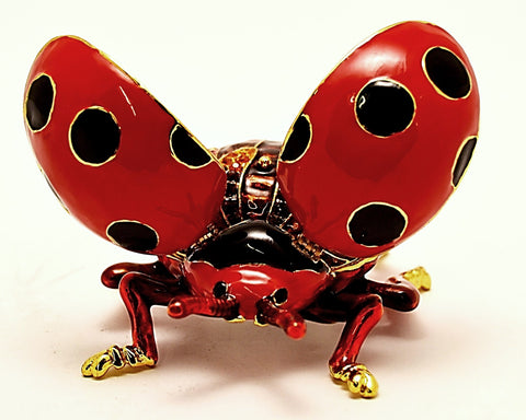 🐞 Flying Ladybug Trinket Box – Hand Painted Red & Black Enamel with Austrian Crystals – Collectible Gift Box by Ciel Collectables
