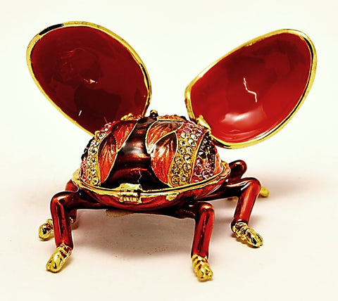 Bring a touch of charm and sparkle to your collection with the Ciel Collectables Flying Ladybug Trinket Box. This elegant keepsake is crafted from durable pewter with gold plating, hand-painted in vivid red and black enamel, and adorned with multi-color hand-set Austrian crystals for a dazzling finish.