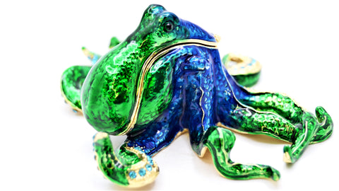 Octopus Trinket Box – Hand Painted Enamel with Crystals – Ciel Collectables