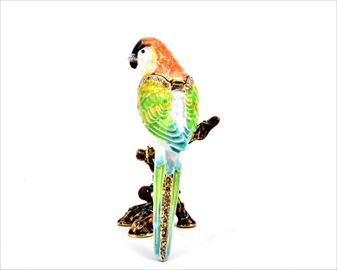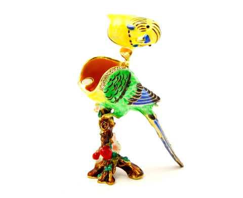 Parakeet Trinket Box – Hand Painted Yellow & Green Enamel with Austrian Crystals – Ciel Collectables