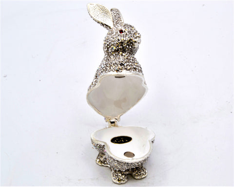 eweled Bunny Trinket Box – Hand Painted Enamel with Austrian Crystals – Gift Box Included