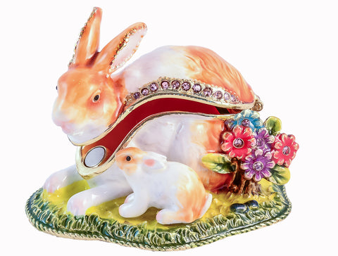 ๐๐ฟ Bunny with Baby on Grass Trinket Box โ Hand Painted Enamel & Austrian Crystals โ Ciel Collectables