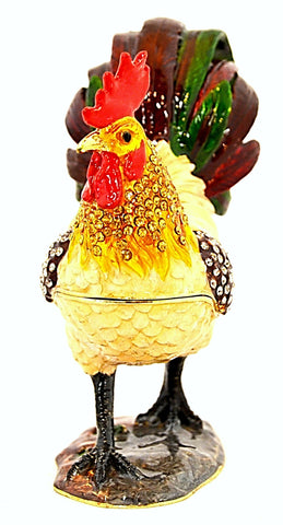 Rooster Trinket Box – Hand Painted Multi-Color Enamel with Clear Austrian Crystals – Ciel Collectables