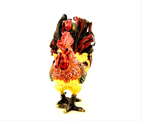 Feathered Rooster Trinket Box with Colorful Enamel & Austrian Crystals