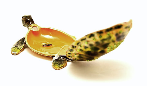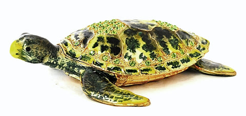 Sea Turtle Trinket Box – Hand Painted Green Enamel with Austrian Crystals – Ciel Collectables