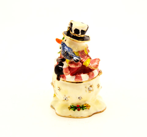 Snowman with Gifts Trinket Box – Hand Painted Enamel & Swarovski Crystals – Holiday Collectible Gift Box