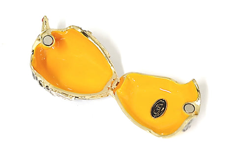 Celebrate artistry and elegance with this Sparrow Trinket Box from Ciel Collectables. Crafted from pewter and plated in gold, this exquisite piece is brought to life with hand-painted colorful enamel and accented with hand-set Austrian crystals for a sparkling finish.
