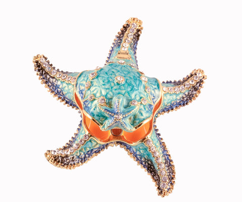 Starfish Trinket Box – Hand Painted Blue Enamel with Austrian Crystals – Ciel Collectables