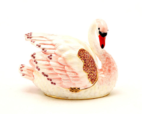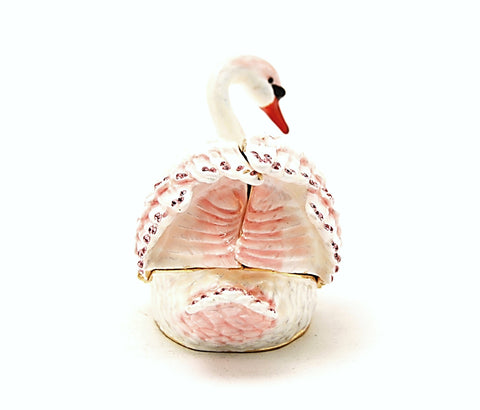 Swan Trinket Box – Hand Painted Enamel with Austrian Crystals – Ciel Collectables