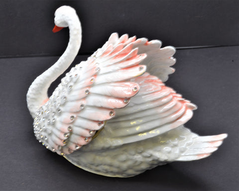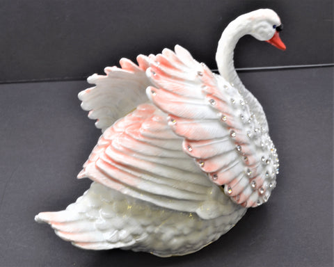 🦢✨ Ciel Collectables Big Swan Trinket Box – Hand Painted White Enamel with Austrian Crystals ✨🦢