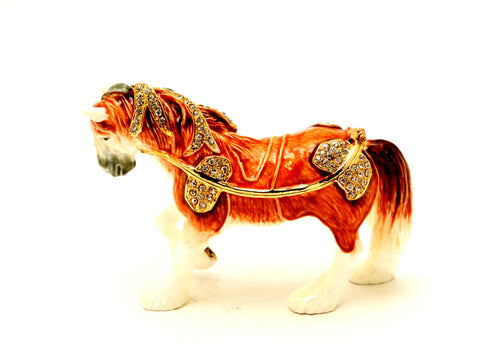 Thoroughbred Horse Trinket Box – Hand Painted Enamel with Austrian Crystals – Collectible Jewelry Box