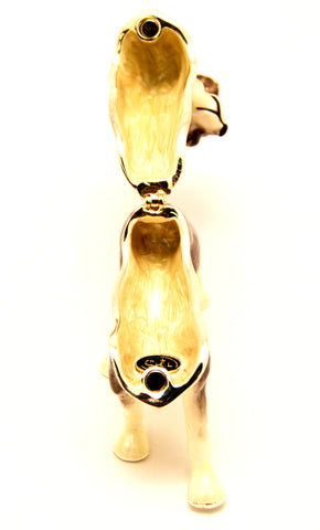 Add charm and sparkle to your collection with this beautifully crafted Dog Trinket Box by Ciel Collectables. Made from pewter metal with gold plating, this hinged keepsake box is decorated with colorful hand-painted enamel and embellished with hand-set Austrian crystals that shimmer with elegance.