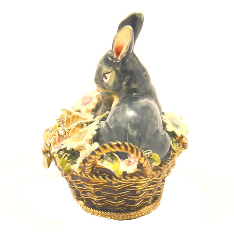 ๐๐ธ Bunny with Baby in Flower Basket Trinket Box โ Hand Painted Enamel & Austrian Crystals โ Ciel Collectables
