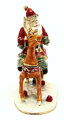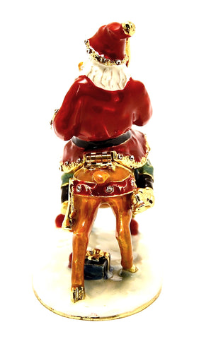 Santa Claus on Reindeer Trinket Box – Hand Painted Enamel with Austrian Crystals – Ciel Collectables