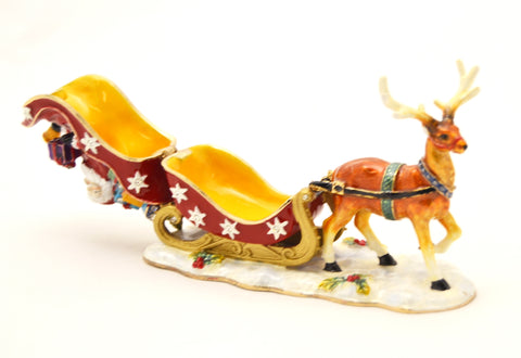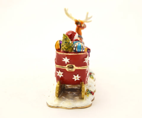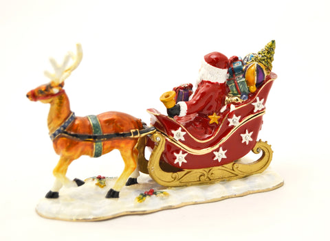 Santa Claus on Sleigh with Reindeer Trinket Box – Hand Painted Enamel with Austrian Crystals – Gift Box Included