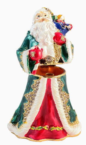 Santa Claus Trinket Box – Hand Painted Enamel with Austrian Crystals – Ciel Collectables