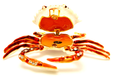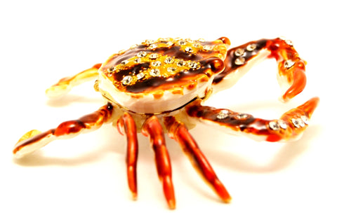 🦀 Crab Trinket Box – Hand Painted Brown Enamel with Austrian Crystals – Collectible Keepsake Jewelry Box