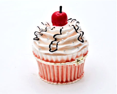 π§β¨ Ciel Collectables Cupcake Trinket Box β Hand Painted Pink Enamel with Austrian Crystals β¨π§
