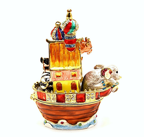 Noah’s Ark Trinket Box – Hand-Painted Multi-Color Enamel with Austrian Crystals – Ciel Collectables