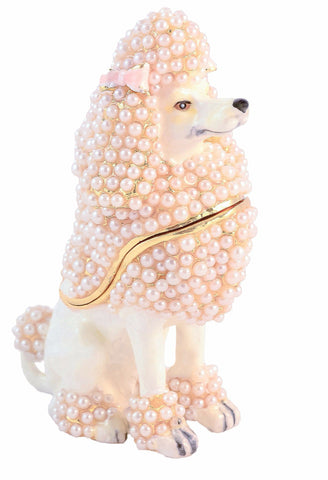 Poodle Delight Trinket Box. Hand Set Faux Pearls