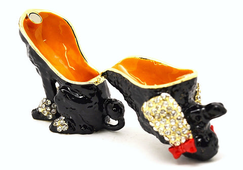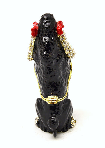 Poodle Dog Trinket Box – Hand Painted Black Enamel with Austrian Crystals – Ciel Collectables